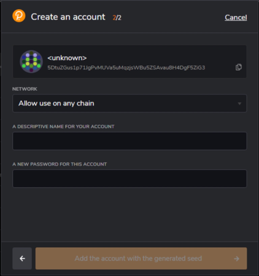 Set a password and repeat the password. Congrats, your wallet is all set up! Your wallet address works on any chain in the Polkadot ecosystem.